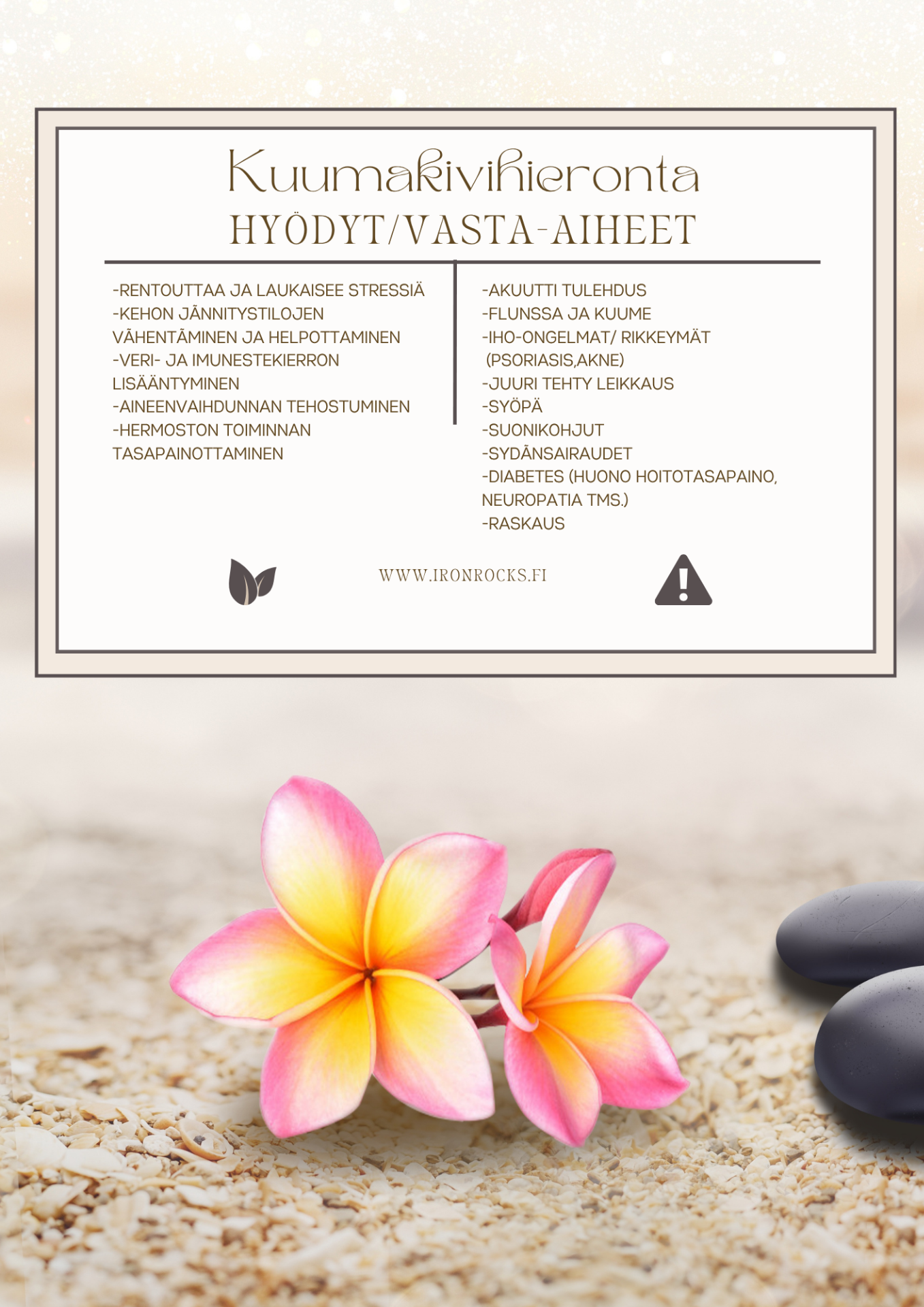 Tule ja koe itse lämpöisten sileiden kivien hemmotteleva kosketus ihollasi.